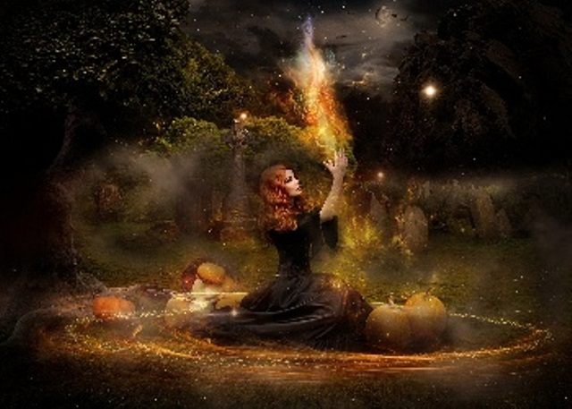 Halloween, also known as Samhain (Summer’s End) is a Celtic Fire Festival for Honouring the Ancestral Dead and Paying Homage to Land Spirits. For the Celts it marked the end of Harvest Time and the beginning of their New Year. Pagans also celebrate it as the beginning of their New Year, a time for letting go of the old and looking forward to the year ahead. It is the time in the year when The Triple Goddess manifests as The Crone, and The God as The Horned Hunter or Holly King, The Lord of Death. The Colours for Samhain are black, orange, purple and brown. Divination, as in Tarot Reading, Palmistry and Scrying are particularly accurate as the veil between the two worlds is at its thinnest.