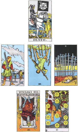 Death tells a tale of change, transition, the removal of the old to make room for the new, upheaval, chaos and loss. It marks the end of one era and the beginning of a new one. It sweeps power away from one and gives it to another. It warns of clinging on when we should let go, of refusing to accept natural defeat or change. It highlights the consequences of forced control or assuming ultimate power. Impermanence is forcefully brought home. Nothing stays the same or lasts forever, no one can alter the force of nature or universal law. No one is immune; Kings, Queen and Rulers can be overthrown when they no longer serve their purpose or have fallen from grace. Death cannot be out-ridden no matter how hard one tries. Death is the leveler, for even the mighty, and those who believe they are invincible eventually fall under its hooves.