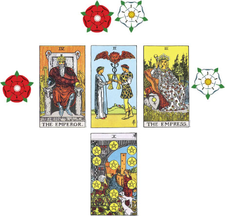On this basis, the story I tell below can be rewritten from so many points of view and we could argue indefinitely about the wrongs and rights of the whole issue. What happened, happened and has now been consigned to the annals of history.   Regardless of how one looks at it, and who the real villains of the day were, the Battle of Bosworth in 1485 heralded the end of the Plantagenet Dynasty and the fall of the House of York. The Ten of Pentacles Reversed amply symbolises their downfall and ruination. Upon Henry Tudor’s victory,  titles, positions, land, castles, property and assets would be confiscated from the Yorkist supporters and given to the Lancastrians. Many Yorkist families fell instantly from a position of great status to being title-less and homeless. As power changed hands, Yorkist Crests of Arms were ripped from castle and town walls to be replaced by Tudor Lancaster ones.