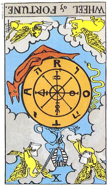Looking down to Position 4 (Answer/Advice/Hard Facts) we have The Reversed Wheel of Fortune. The good times will be coming to an end soon, and as The Wheel turns on to its downward rotation, I believe the interest and excitement on his side is going to wane. She will see less and less of him and he will upset her more times than make her laugh. He will become unreliable and may start to wander. It is just his typical nature taking over. This is where her Knight of Wands is bound to bow out of her life and she will be left bereft, confused and suddenly at a terrible loss. He will have become her reason to exist, and she will feel life is very dull and boring without the heat of his presence.