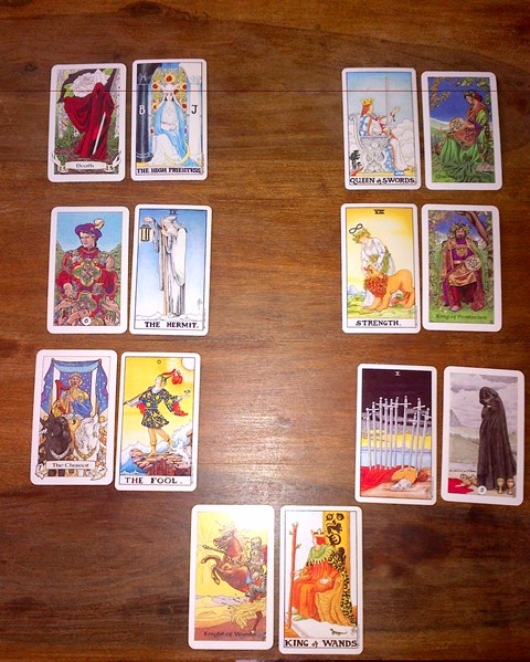 This is a toughie but usually you get a gut feeling that the Question asked has nothing at all to do with why they are there for a Reading. This must be handled very diplomatically. I usually say, for example ‘you ask about your career yet a lot of Cups Cards are coming up and a certain Knight of Wands. Anything I tell you about the Cards you say bears little or no relevance to your Question. Are you sure that there is not something bigger on your mind that might be interfering with your Career Reading? The Cards don’t make sense to you but would they if there was another Question you might ask? The real issue may be that the Querant is having an affair with a married man in work and what she really wants to know is how it will work out?