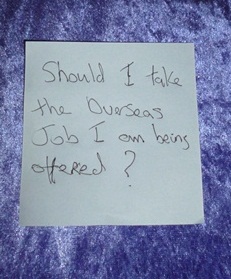 The Querant’s Question for his Reading. Should I take the Overseas Job I am being offered? It is important to keep referring back to the Question throughout The Reading so that you do not become side-tracked.