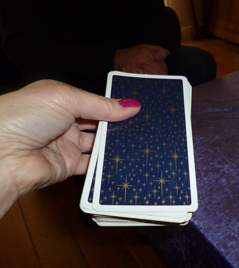 - With the clean room and table dressed, it is now time to do your Psychic Protection, Cleansing and Grounding of Self and Protection and Cleansing of Reading Space. (Some Readers do this before setting up, so do what you are comfortable with) Last but not least your Tarot Cards and any other Cards you choose to use should also be Cleansed. All your Cards should be dealt out into three piles as you Cleanse, Upright any Reversed Cards so that you are dealing with a Clear Deck for each Reading. Give the Cards a Shuffle suffusing them with White Light and setting the intention that these Cards will now be used for the Reading of —— (name the person). After you Shuffle, take a look at the Base and Top Card. Take a mental note of these Cards as they are very often relevant to the upcoming Reading. Note- If you are Reading at a Holistic Fair or a Tarot Party, you will not have much time. Just make sure you Upright all the Cards as quickly as possible between each Reading and give them a good Shuffle while doing a quickie combined Cleansing and Protection of Self and Cards.