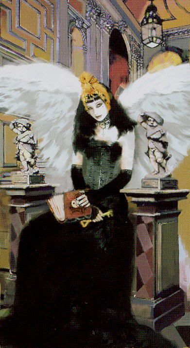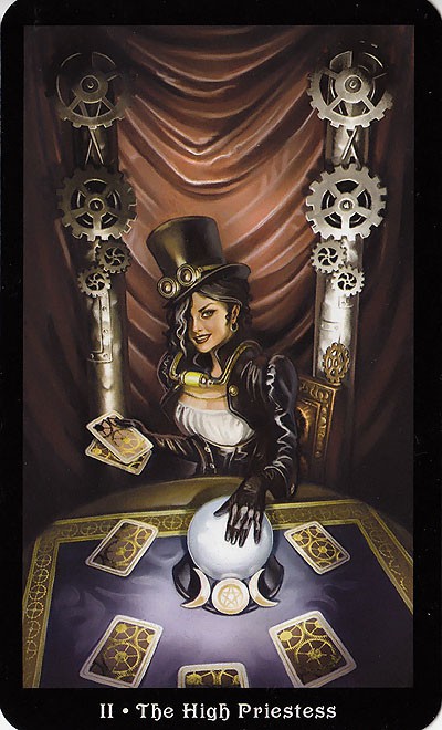 The Reversed High Priestess holds the secrets of many a sexual partner, especially those who are married, committed to another or hold high position or rank. She listens to them bleat their little hearts out about how their wife or partner does not understand them, how they feel unappreciated and taken for granted. She stores all their secrets in the vaults of her mind, or in her little black book. In general she is loyal and understands that a big part of her attraction is in how different she is from the norm, how she allows them to be who they want to be without criticism or judgement. Keeping their secrets is part of her allure and she will encourage each one to believe that their relationship with her is unique, different from all the rest. The Reversed High Priestess makes the perfect courtesan or highly paid escort. She carries out her work flawlessly and professionally. However, one would be a fool to underestimate her true disconnect from the emotions of those she might service. She will play her part, but only up to a point. Should the mood change or her circumstances, she is in possession of great secrets she will not hesitate to disclose if it suits her purpose. She can become a lethal adversary so it is best not to mess her about. The Reversed High Priestess could encourage the disclosure of secrets or classified information into her trusted keeping. She can enjoy compiling a portfolio on all her acquaintances or clients. Should it fall into the hands of the wrong person, many lives or reputations can be taken down. Barbara Moore (Gilded Tarot) in her description of The High Priestess suggests ‘she beguiles, she promises knowledge; she can be dangerous.’